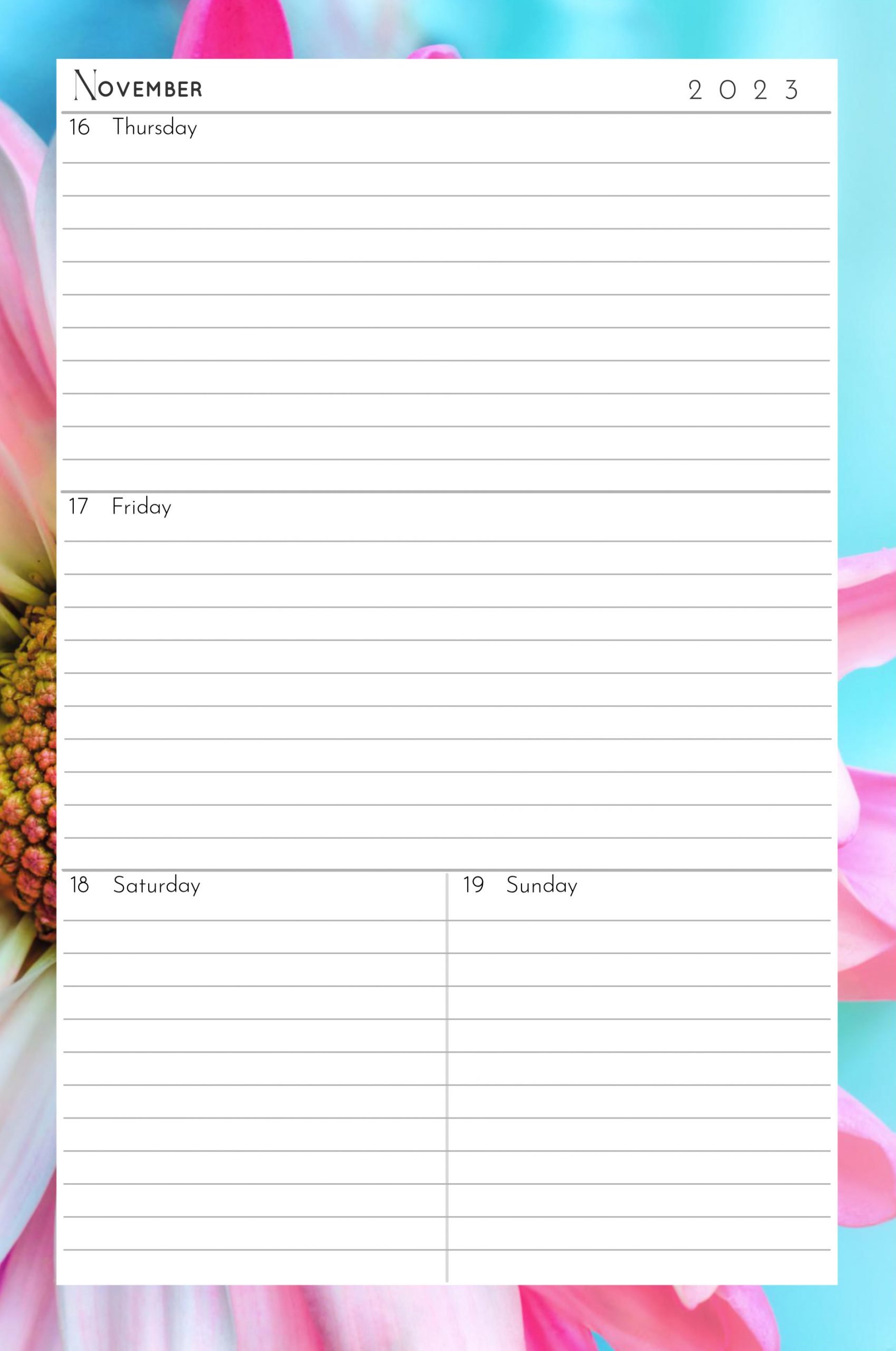 - Fully lined WEEK-TO-VIEW diary entry pages